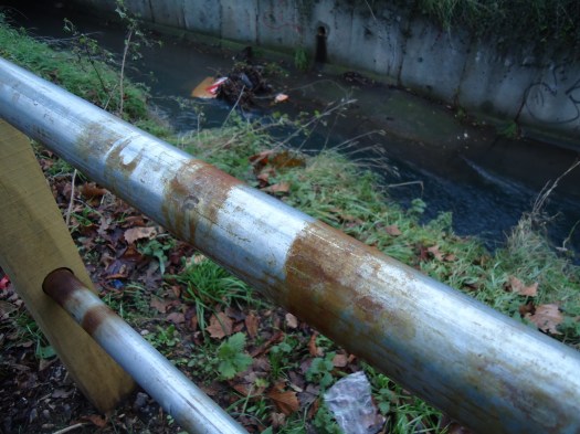 There are a few items that let it down a little and I’m assuming these will be corrected when the works are snagged at the end of the job. One item is that in a number of places the levels are wrong at the drop kerbs meaning that water puddles which is not very clever – especially when there is a gully nearby. The other is that the galvanised steel tubes used in the small sections of barrier (that are mostly of oak – very nice) are already rusting which looks bad. The galvanising needed to be a bit thicker me-thinks.