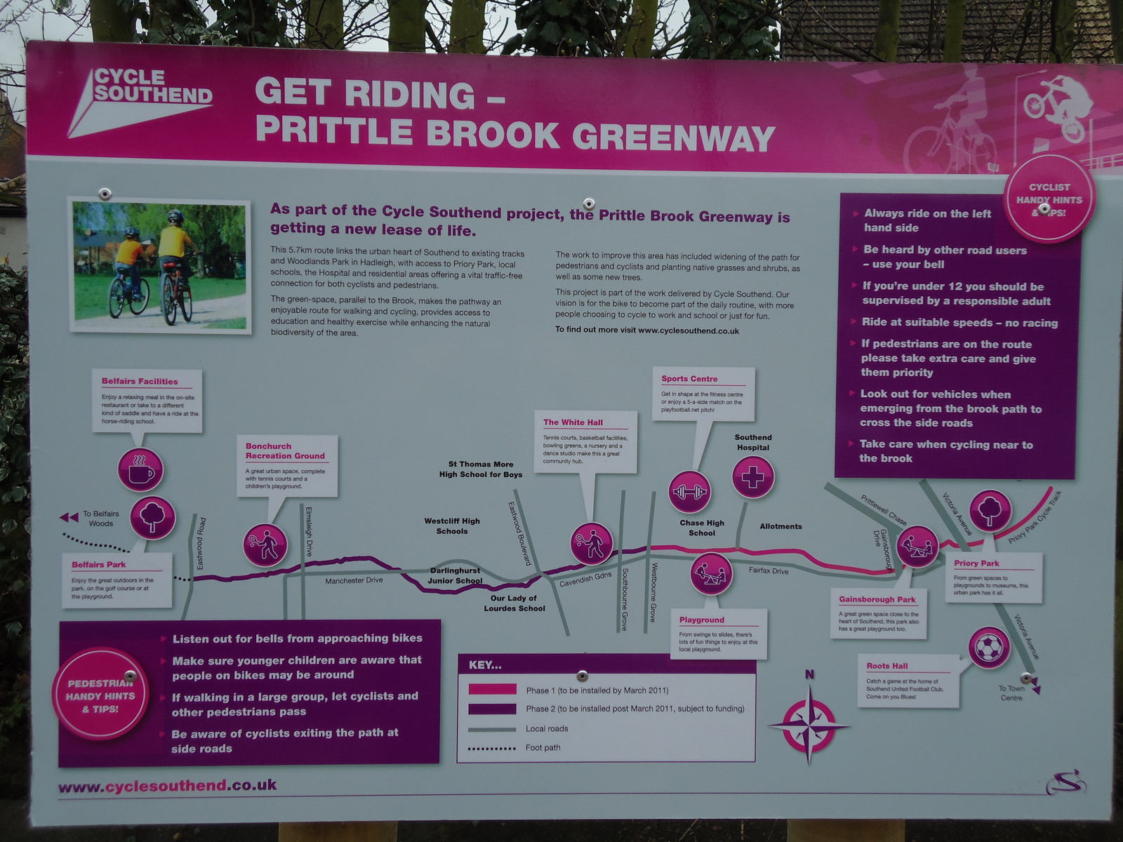 The Greenway is an upgrading of the existing footpath that runs from Priory Park to Belfairs Woods. Only the first section has so far been completed and converted to combined cycle/footpath. I believe the rest of the route to belfairs woods is to be similarly improved – but only when budget allows. Look on the Southend.gov.uk website for more info or on this info leaflet http://www.cyclesouthend.co.uk/uploads/st6vmdkorket3hSV.pdf