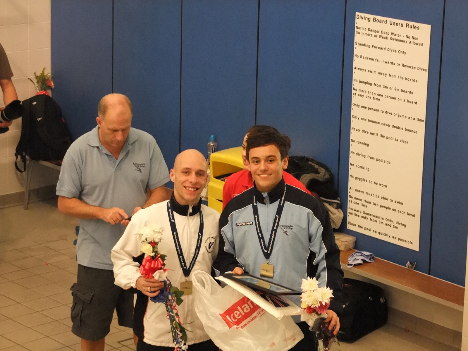 This last session was the mens 10m synchro competition featuring messrs Daley and Waterfield and the the ladies 3m springboard synchro. We stayed for the whole of the session and both my kids were thrilled (for different reasons) to get photos taken with Tom after the event. My lad Tom was thrilled as he is learning to dive at the same pool. My daughter Liz was thrilled as she thinks Tom D is a bit dishy.