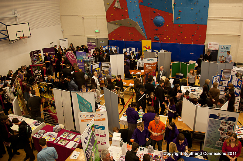The fair followed a similar and very successful event in 2010 which was held in a local leisure centre. This year the event was held at Connexions brand new Youth Centre called SYC in Shoeburyness and was much better for it. SYC was openend in July 2010 and is an excellent facility with a restaurant, and many rooms for various purposes. The careers fair made use of all these facilities plus the large sports hall where the exhibitor stands were located.