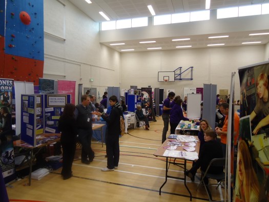 There were 60 exhibitors represented at the fair including local companies, education providers, universities and the armed forces. The ICE stand was on plot 61 which was near the entrance and exit and snuggled between the ladies on the Jobcentre Plus desk and some chaps on the YMCA desk and opposite the Nail Bar girls. I was there early and set up ready by 9am.
