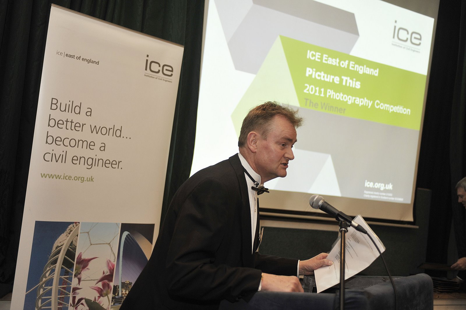 The Merit Awards dinner commenced at 7.30pm with the prizegiving ceremony.  The President introduced the ceremony with a speech recalling the highlights of his day and re-iterating his view that infrastructure is the key to economic development.  He then handed over to Chris Dodson who announced the winner of the ICE East of England Photographic Competition and then to Regional Director Glen Owen who announced the winners of the Merit Awards competition for projects completed in the 12 months to 1st June 2011.