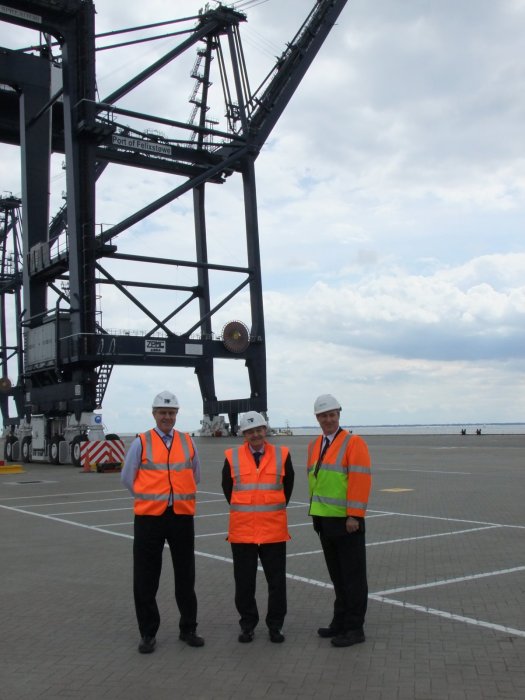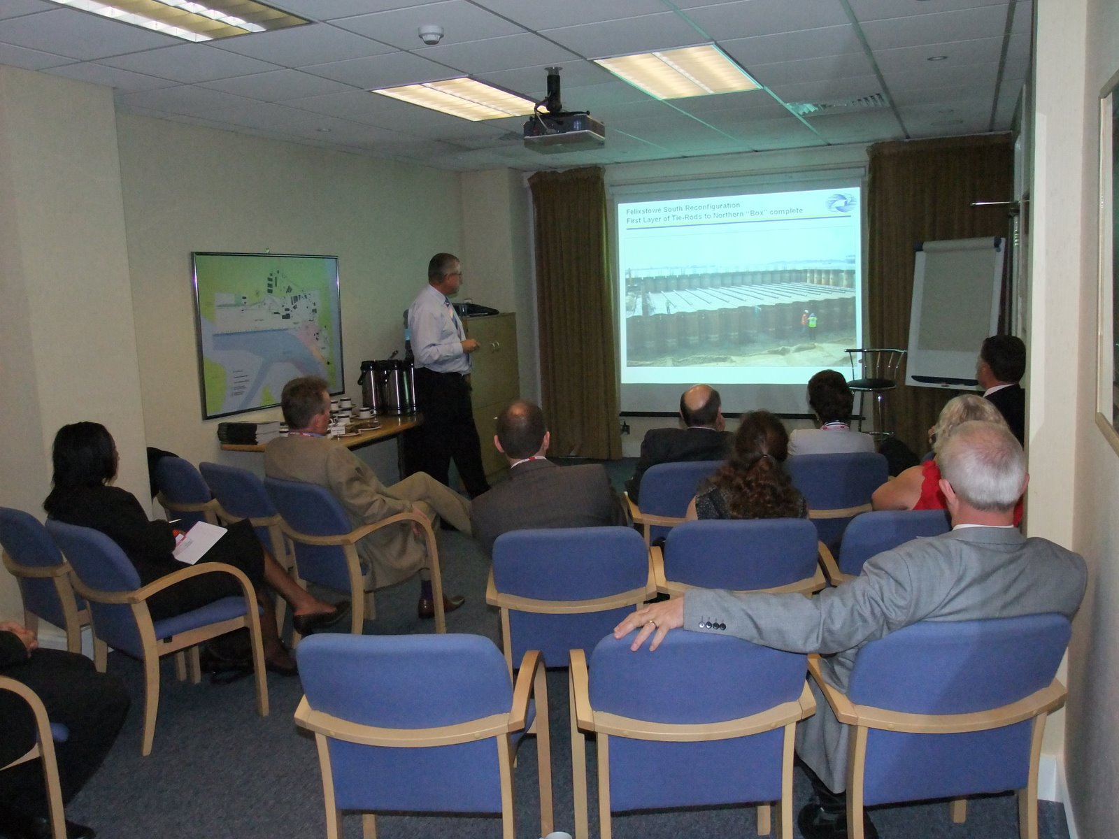 The party then moved on to the Port of Felixstowe for a visit to the newly completed Phase 1 Berths 8&9.  On arrival there was particular interest from the group in the port model in the reception of both felixstowe and Harwich ports and the surrounding area.  An introductory presentation was given on the history behind the port and the new deepwater facilities along with an insight into how the works were constructed by civil engineering contractor Costain.  More info on the design and construction of the new facilities can be obtained here.