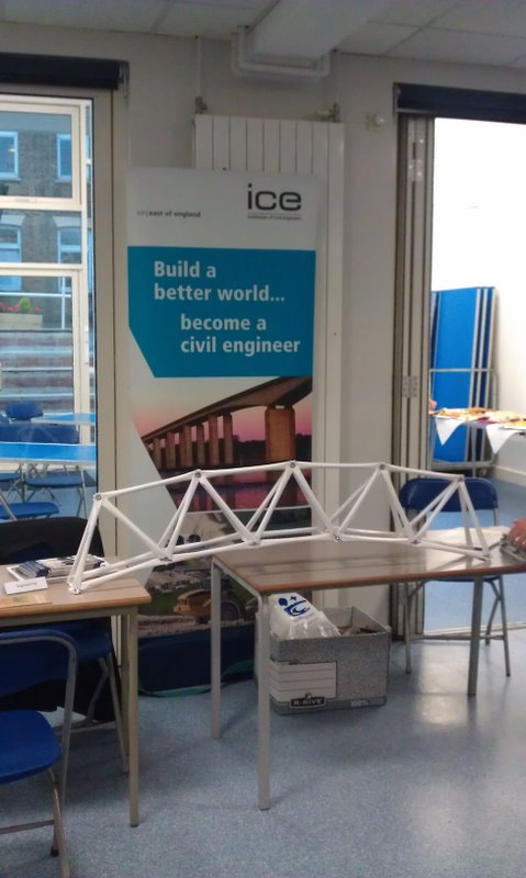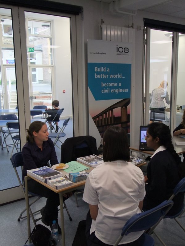 I manned a stall at a year 10 careers fair at St Bernards High School, Westcliff earlier in the week. I was ably assisted by AECOM engineer Laura Cockle and between us we were promoting careers in the Civil Engineering industry and engineering generally as representatives of The Institution of Civil Engineers.