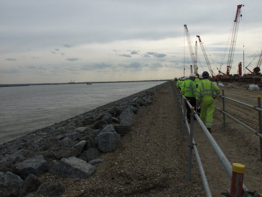 On Thursday 14th July, 22 local members of the Institution of Civil Engineers (ICE) and I visited London Gateway in Coryton, Essex to view the ongoing Phase 1 Port construction works. I had organised the visit in my capacity as Chairman of the Essex Branch of the ICE. London Gateway is owned by DP World, one of the world’s largest marine terminal operators. The ICE are on twitter at @ICE-Engineers and ICE Essex at @ICE_Essex.