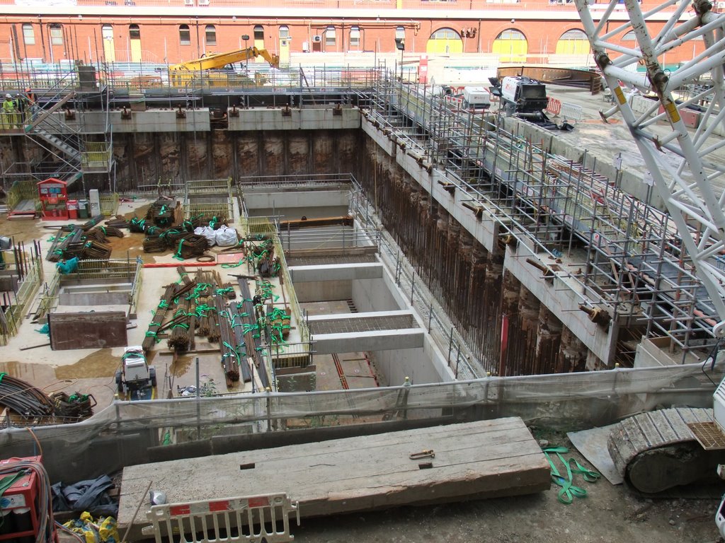 The station is being constructed by Expanded Group – a wholly owned subsidiary of Laing O’Rourke. The station box construction is a circa £100million subcontract. The works started in 2009 and are due for completion in Summer 2012 in readiness for the arrival of the Tunnel Boring Machines TBM’s. The TBM’s will bore into the complete station box, be ‘dragged’ through the box, and then continue boring out of the other end.