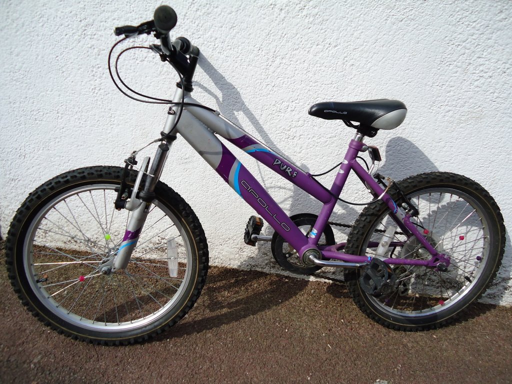 This is an Apollo Pure girls mountain bike in Purple. Not sure of the frame size but suit 7-12 year old I guess.