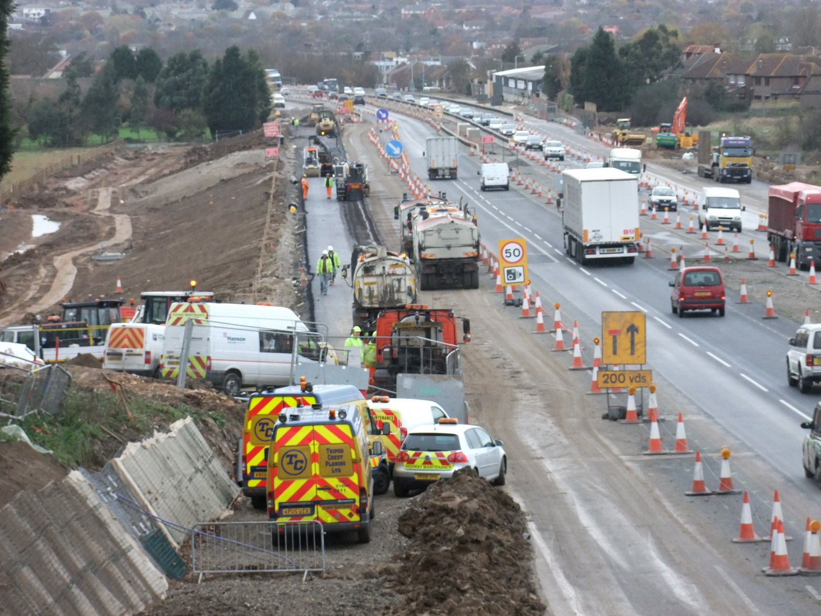 The works appear to be going really well. The northbound traffic on the A130 north of Sadlers farm Junction has been swapped over onto the newly constructed carriageway to allow works to the southbound carriageway to be carried out.