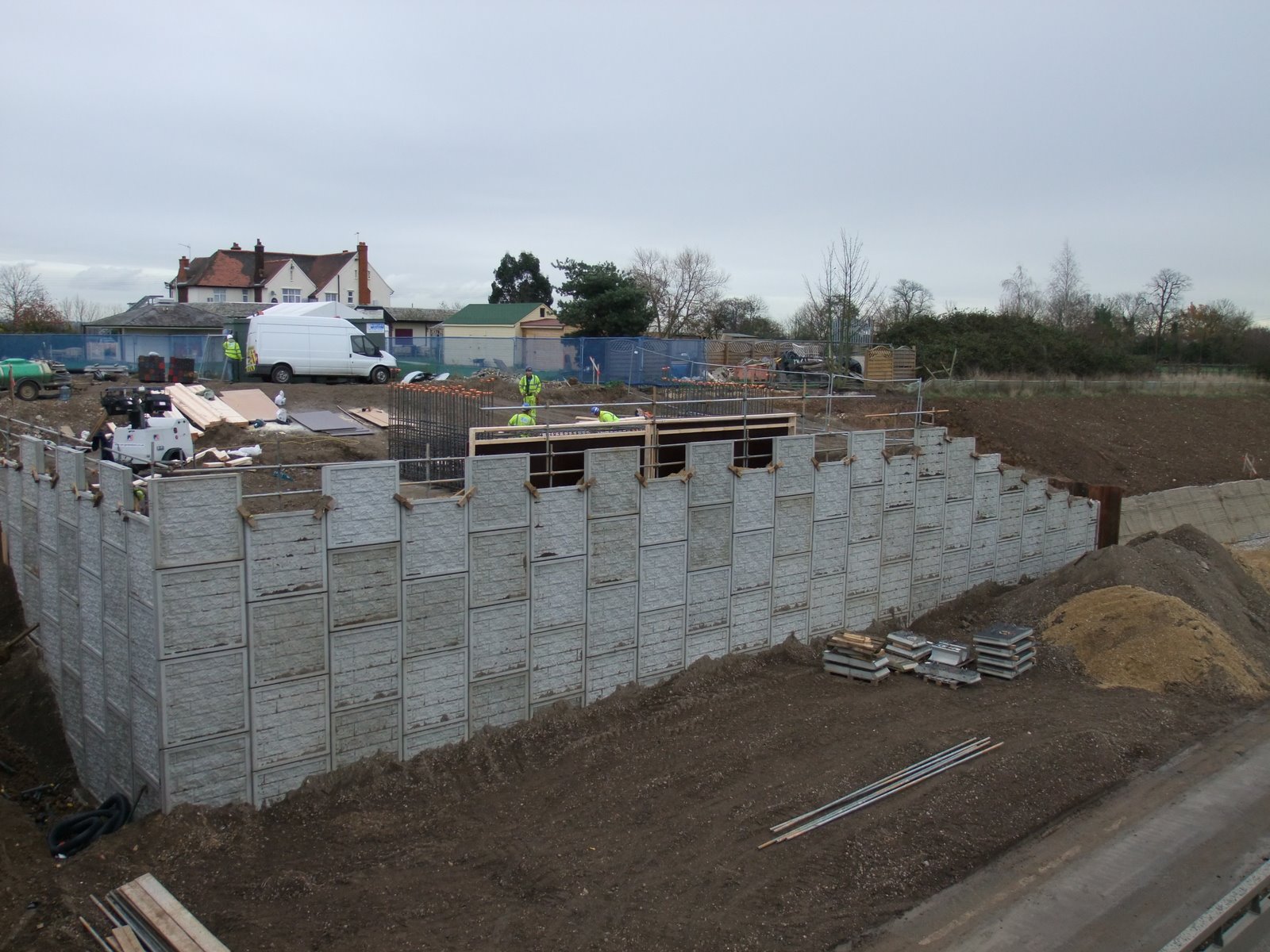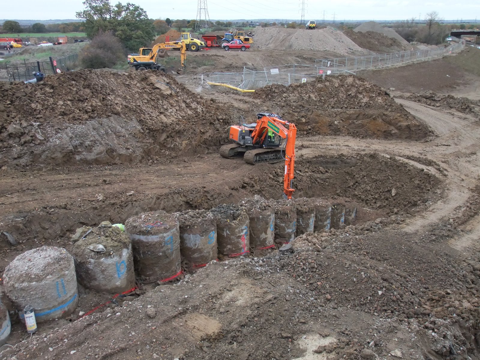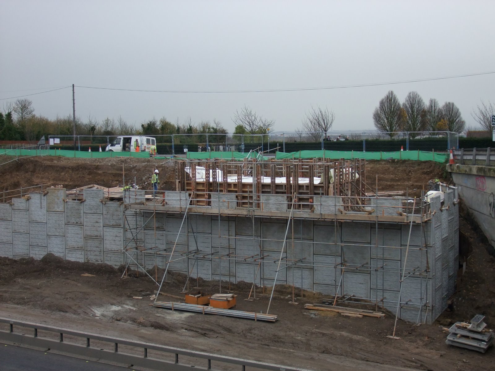 The abutments to new Church Road Bridge are steaming ahead too. The reinforced earth concrete panel faced fill areas to each being raised in little over a week each – impressive. The bankseat to the south is now also being constructed. Works are on a tight schedule here as the A13 is scheduled to be closed overnight for four nights 12-15 December 23:00 to 05:00 to allow the deck beams to be lifted into place. I might try and go along to watch that! More details of the closures on the Essex CC website here.