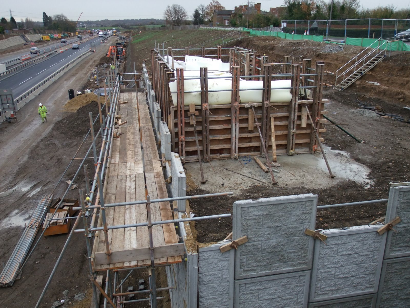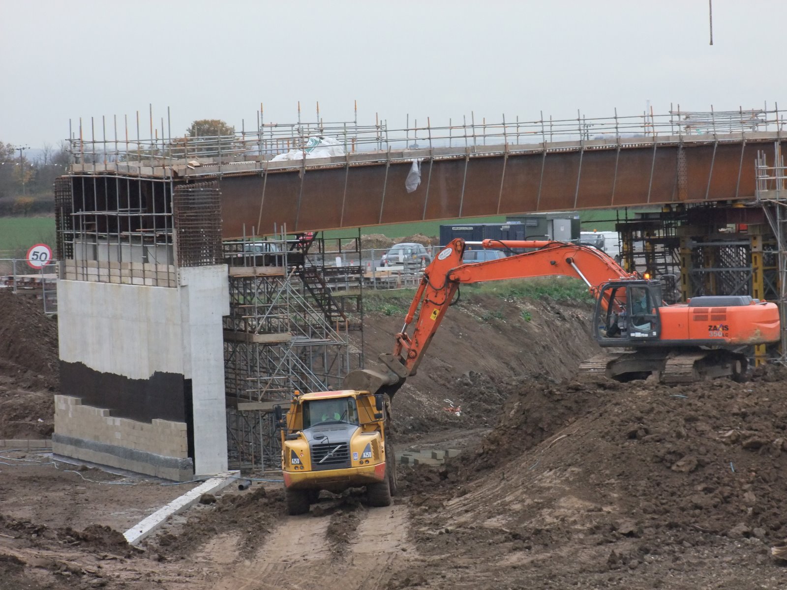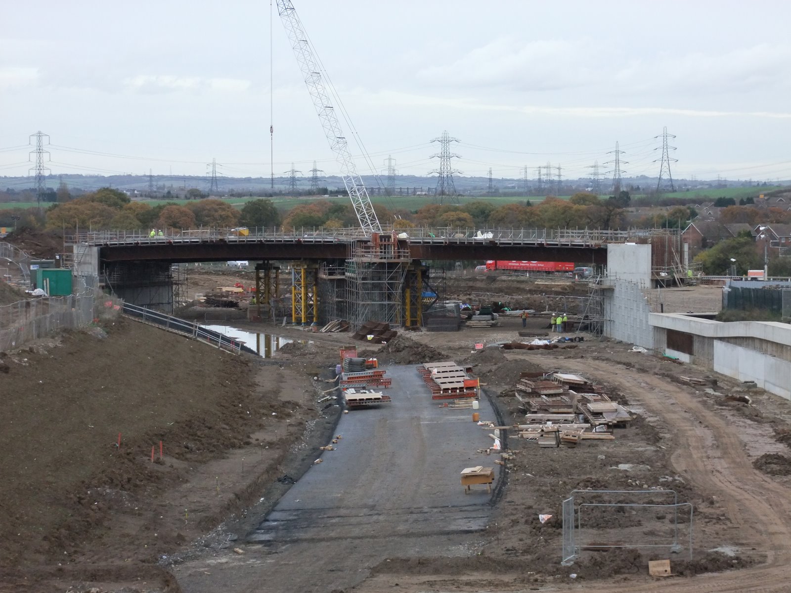 Works to Sadlers Hall and Sadlers Farm Bridges is well on with the steel deck beams in place and concreting works to the decks being carried out.