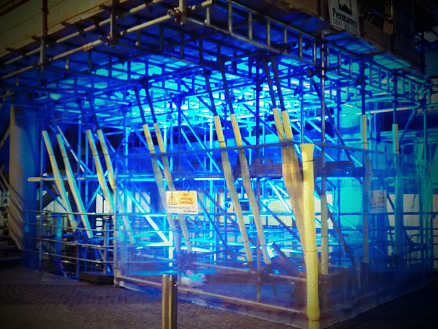 I was in Heathrow for the day today and passed through London on the way home as night was falling. I took some pictures of a construction job at Paddington Station on my phone as I passed through and I rather liked the results – even though the actual quality of the photos wasn’t very good. I tried playing around with some of the settings and pre-set effects and thought the ‘vintage’ one pretty good.