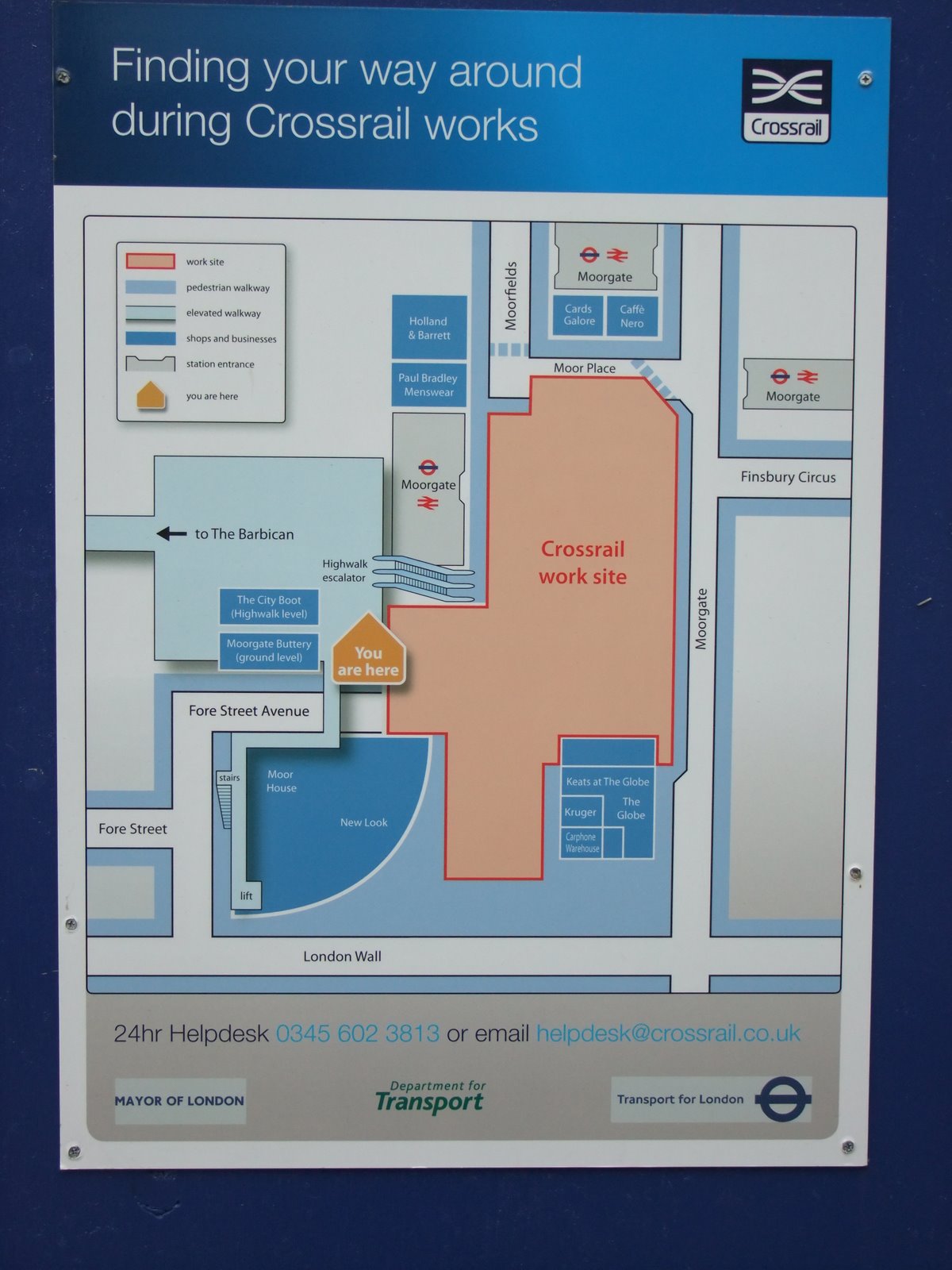 The works at Moorgate are part of the Crossrail project to construct a new railway under the centre of London connecting Shenfield in the east to Maidenhead in the west. The works at Moorgate are part of the new Liverpool Street Crossrail station which will connect to the existing Liverpool Street above ground station to the southeast and to Moorgate London Underground station to the northwest (see graphic below).