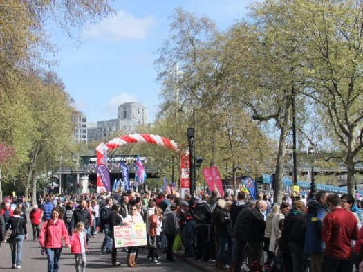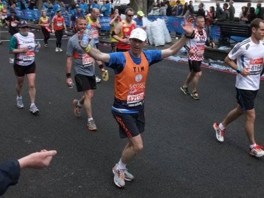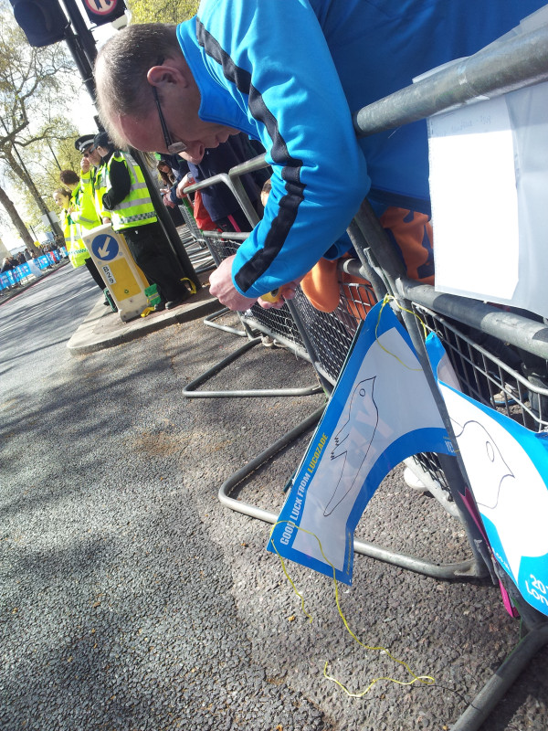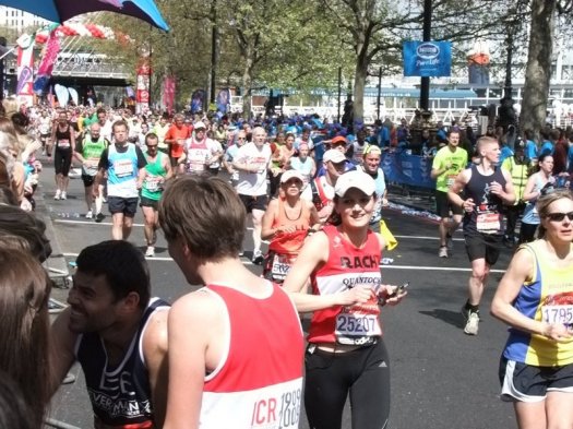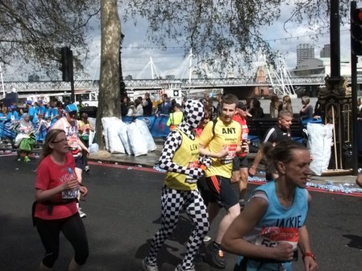 The initial decision to go was just to watch and maybe to see a couple of twitter friends go past – Barry Hipwell (@BimblerBaz) and Paul Taylor (@paulmonkey). Barry was doing his second London Marathon and was raising money for CLIC Sargent – his donations page here, and Paul was running his first London Marathon raising money for Addaction – his donations page here. Paul wrote a brilliant blog about his race which is well worth reading and almost makes me want to enter the ballot for next year 😉