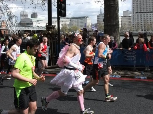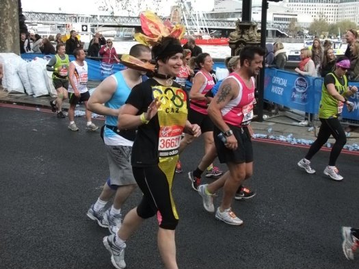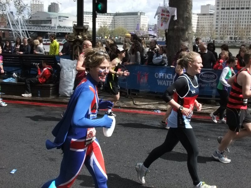 There were serious runners and runners in costumes. Just about everyone was raising money for one charity or another and I can’t begin to think how much money is raised overall at the event. I guess if 36,000 runners each raise £100 that is £3.6 million and many people were raising thousands not hundreds. Amazing. The photos below are mainly of the runners in costumes as they were easy to select so enjoy looking at them below.