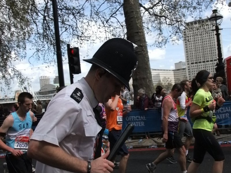 I have to say that having been and spectated, that is just the side show. The main event for the crowds is to support and cheer on the runners who every man jack of them are undertaking a massive challenge to run 26.2 miles. Rowenea and the chap next to us were handing out jelly babies and harribo and screaming support at everyone running and walking past and Liz and I soon joined in. It is great to see the effect this support has on the runners and you can see how much it means when reading Paul’s blog.
