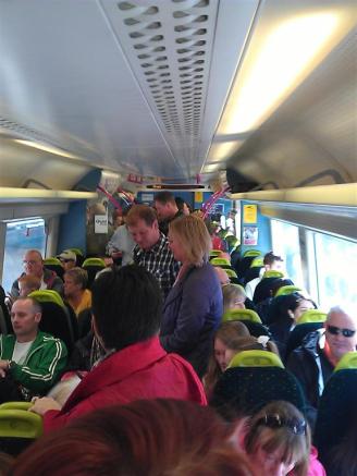 We decided to go up to London by train. Being a 20 minute walk to the station we decided to drive to West Horndon (Essex) and get the train from there. Mistake. The train was absolutely jam-packed with people all doing the same thing. We stood the whole way. Alot of people got off at West Ham. We went to Fenchurch Street where we got our first taste of the crowds – absolute mayhem.