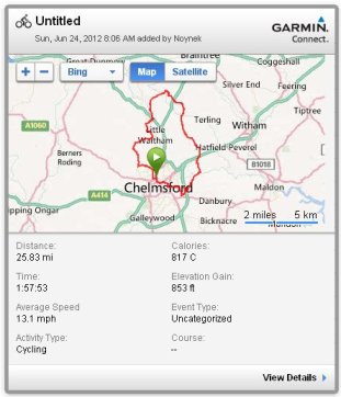 The route was good – with a little bit of off road (200m) – which wasn’t too good on a road bike – but otherwise it kept off the main roads (apart from exiting and entering Chelmsford). You can open a full garmin connect gps plot of the route by clicking the image below.
