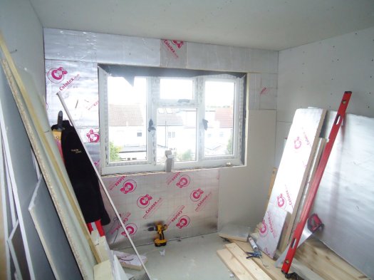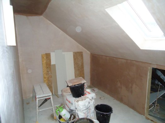 Good progress on the loft conversion again by Messrs Tabor-Jones Limited this week and the new accommodation is really beginning to resemble habitable rooms now with plaster going on and the windows going in. A few niggles with the boiler but these will get solved I’m sure.