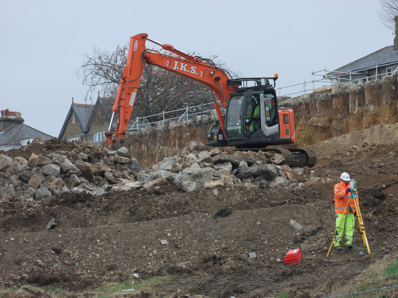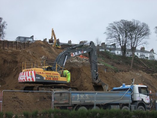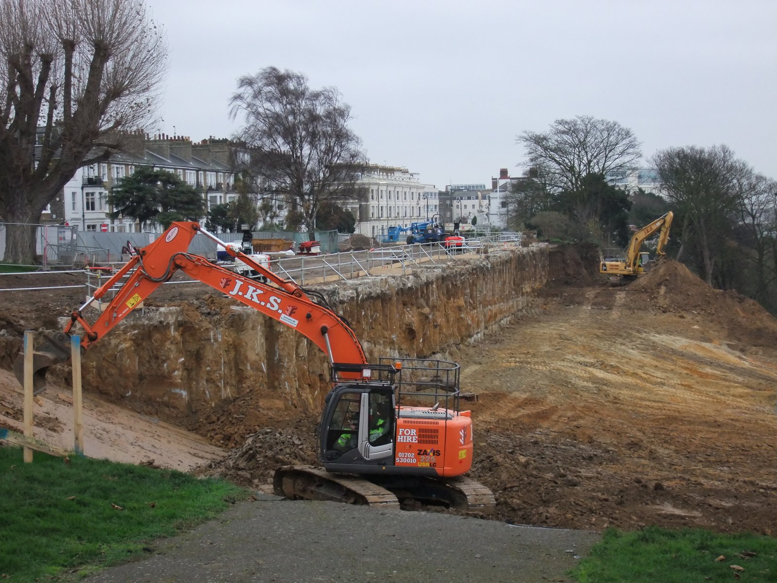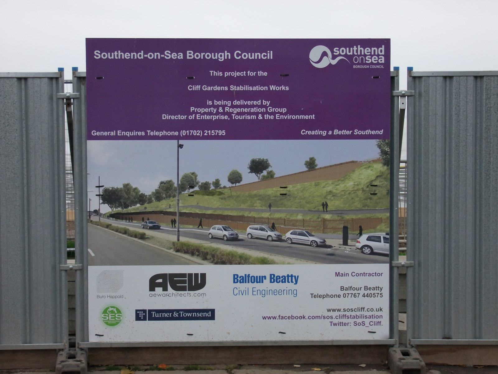 I was pleased to note from the information board that the project not only has its own (excellent) website (www.SOSCliff.co.uk) – it also has its own Facebook page (http://www.facebook.com/sos.cliffstabilisation) and twitter account (@SoS_Cliff). The website provides details of the history of the slip along with details of the works plus links to the regular newsletters and progress photos. I did note that there was a Public Liaison Office with opening hours of noon to 4pm (weather permitting).