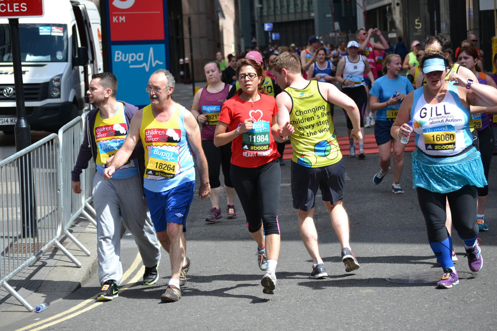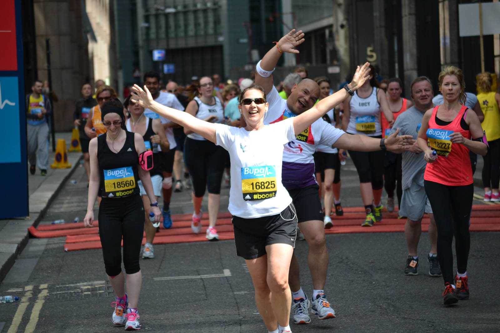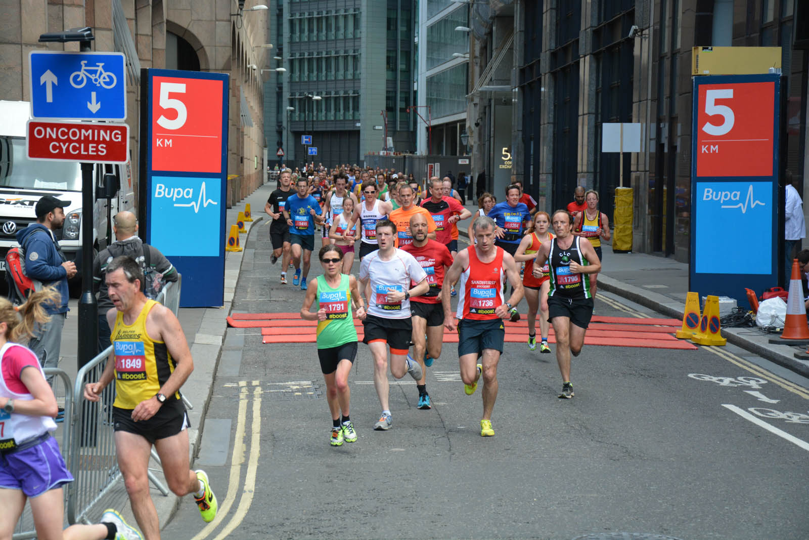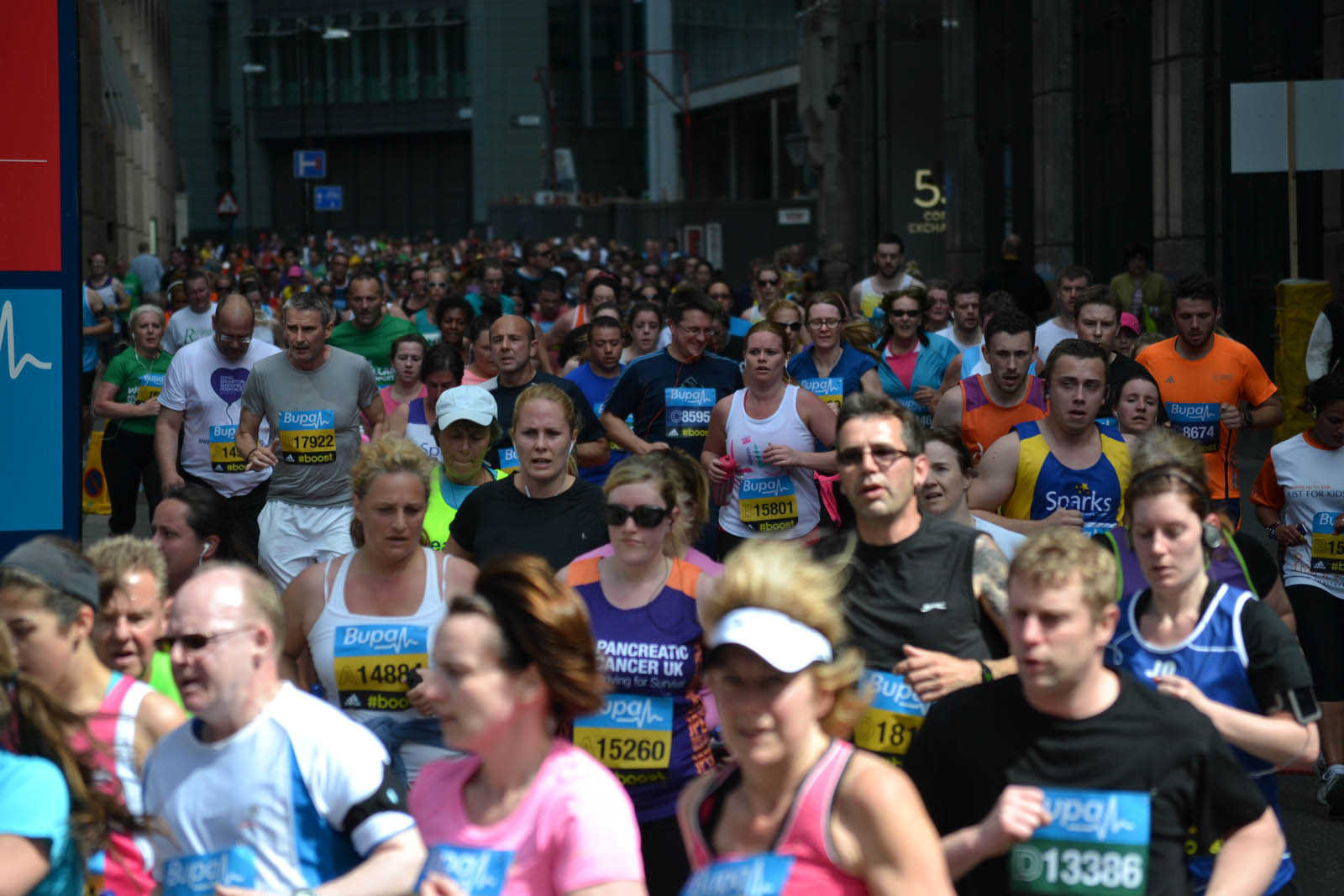 Today I took time out to go to the BUPA London 10,000 road running race which – somewhat unsurprisingly – was in London. I was there partly to support a few local runners but mainly to take a whole heap of photographs of as many of those taking part as I could. I succeeded in the later by coming away with around 3,500 photographs. This is almost certainly a PB for me! I was the guy in the orange shirt stood on a chair on the bend just past the 5km markers.