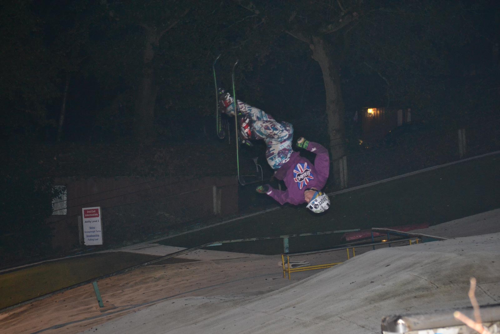 If you are interested then I was using a Nikon D5200 with 18-105 lens generally with an SB700 flash with some of the long daytime shots using a 70-300 lens. Lizzie was using a Nikon D3100 sometimes with onboard flash but mostly with the SB700. Cameras were generally using shutter priority at 1/200 and an ISO of around 1000. The skiers were sufficiently slow to be captured well at the 1/200 shutter speed that was driven by the flash max sync speed.