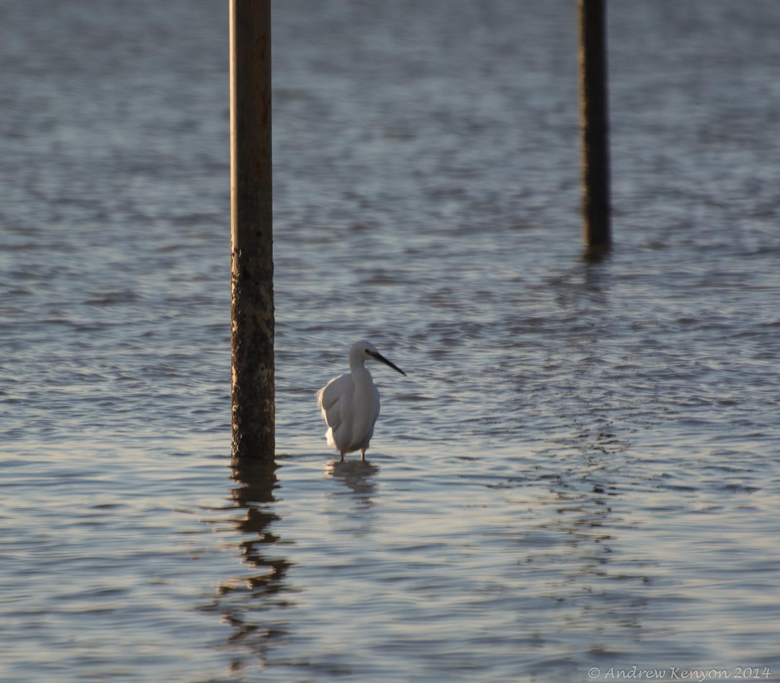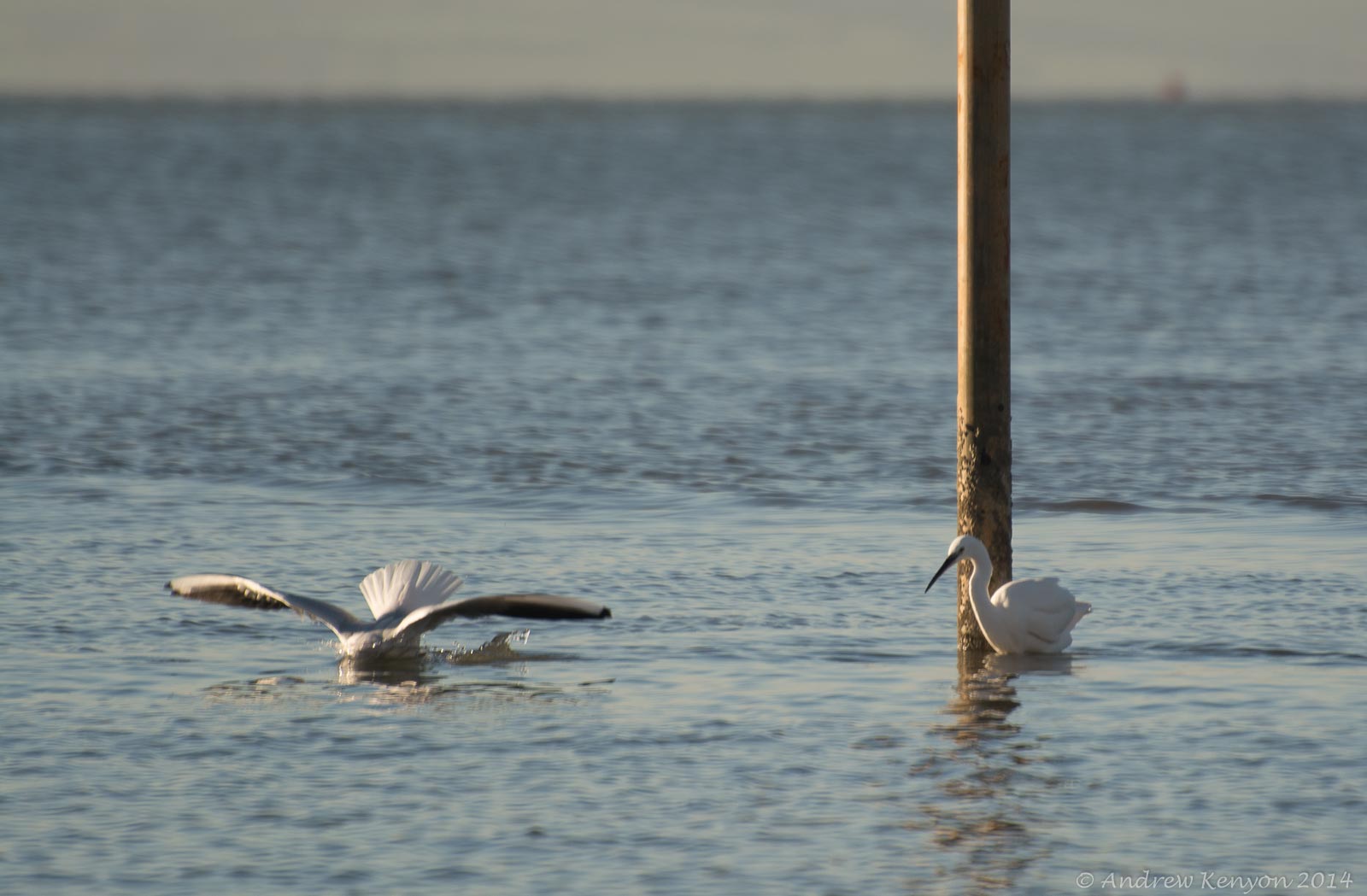 I watched and photographed the gulls for a while before spotting an Egret a bit further down the beach. An Egret is best described as looking like a white Heron and they are quite common in the south east especially in winter although I have never seen one fishing on the beach. This fellow was a Little Egret I think (yellow feet).