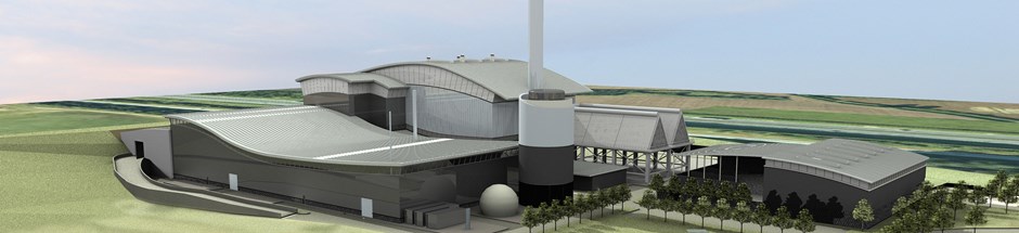 Visualisation of the completed plant. EfW far centre. MT near left. BA right.