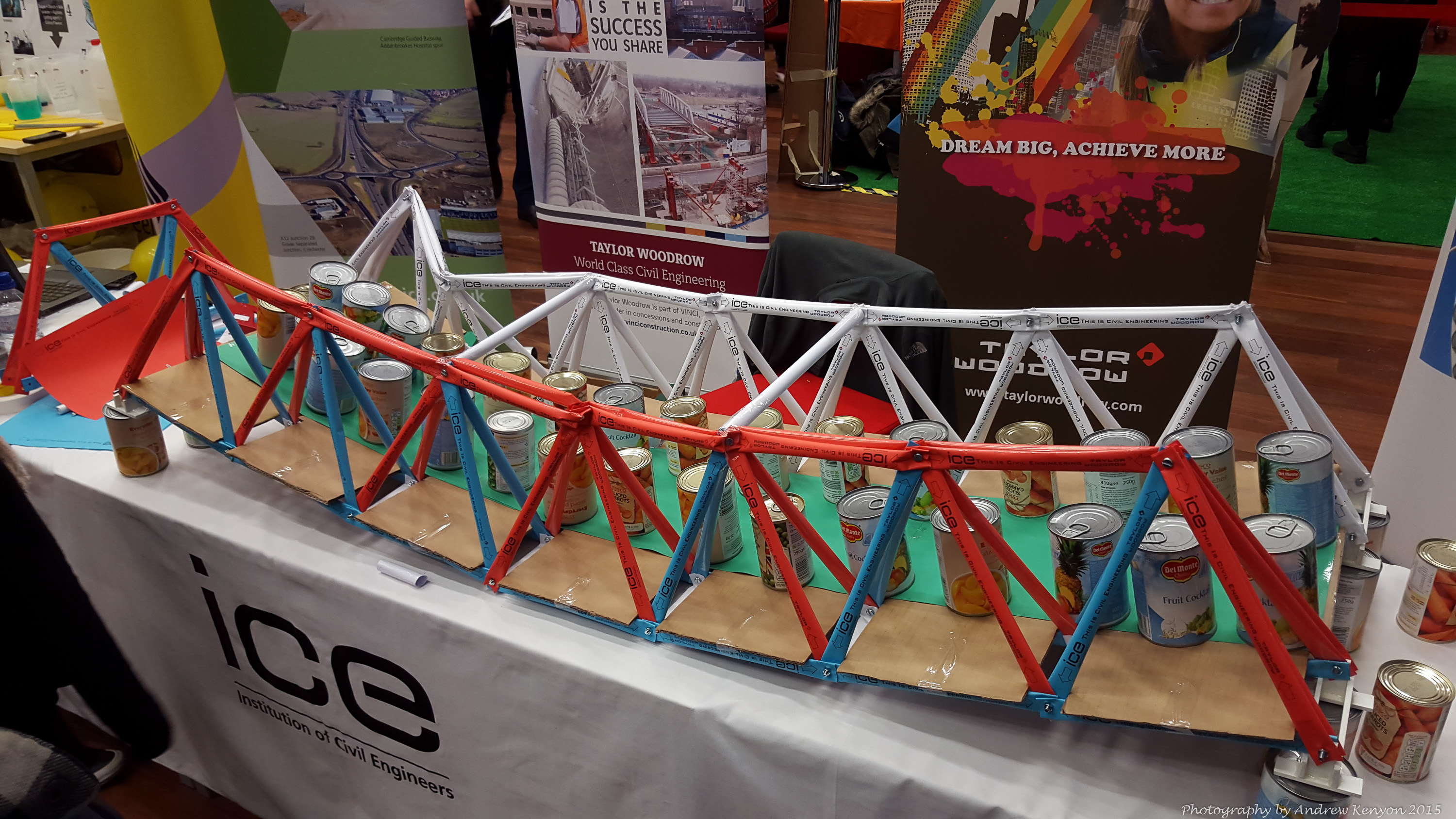 I was there with others to promote Civil Engineering as a career and to highlight the work I do as a professional civil engineer for my employer Taylor Woodrow (A division of Vinci). With their support I had prepared a paper bridge activity / demonstration which I was going to be working on during the event.